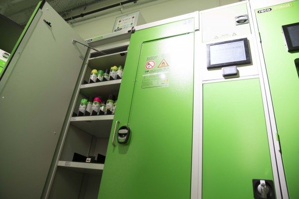 Благодарение на различните по размер товарни клетки системата е подходяща за управление на почти всички спомагателни и работни материали. Дори по-големи продукти, като например предпазни средства за работа, заваръчни материали и абразиви, могат да се съхраняват оптимално в шкафа за товарни клетки чрез инсталиране на големи товарни клетки. В една машина могат да се съхраняват максимум 60 различни артикула.