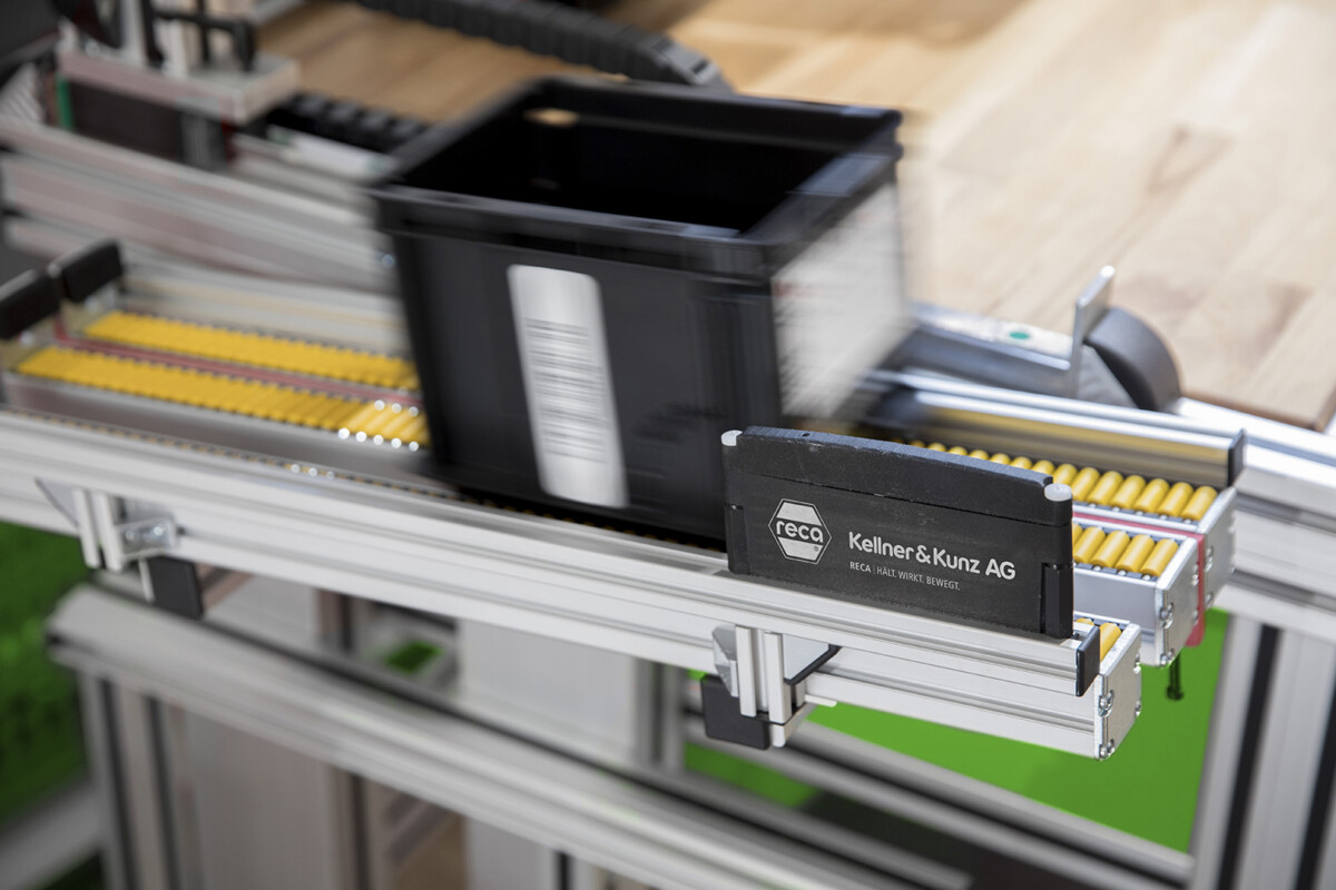 На рафтовете KANBAN RECA се инсталира RFID iShelf като горен рафт, на който поставяте празните си контейнери KANBAN. Интелигентният рафт задейства незабавното поръчване на съответната част за този контейнер и предава данните директно към системата SAP на Kellner& Kunz AG.